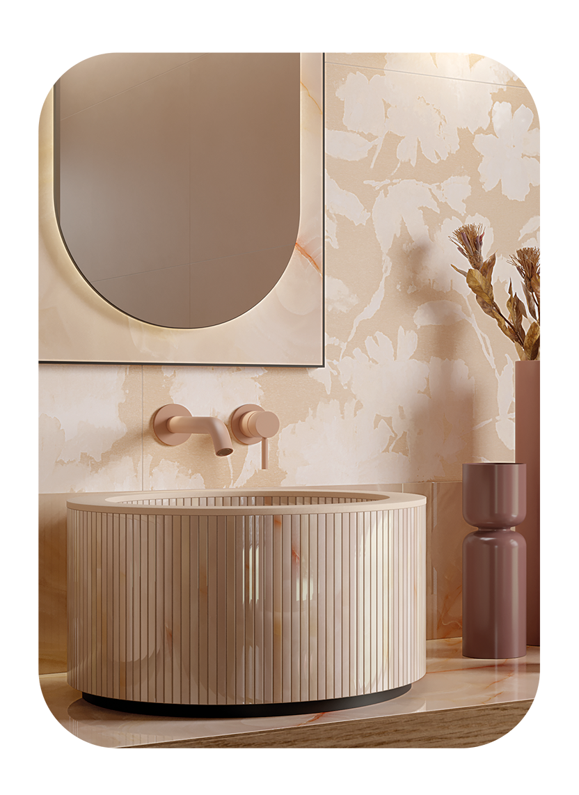 Die neutrale, warme Farbe wirkt gut in Kombination mit Holz und Beton.