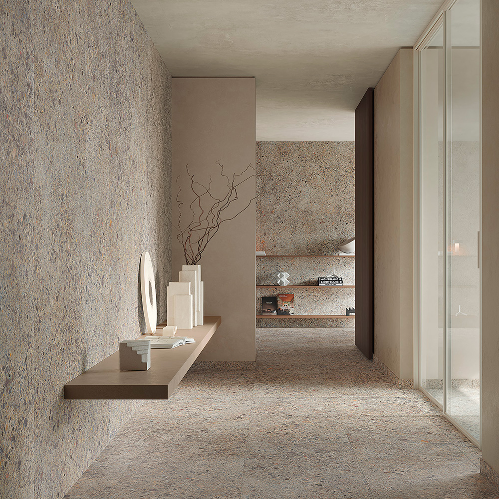 Oberflächen aus Feinsteinzeug, die den Stein nicht imitieren, sondern auf künstlerische Weise neu gestalten und dabei Mängel in Vorzüge, Unvollkommenheiten in charakteristische Strukturen und Details in Besonderheiten verwandeln.