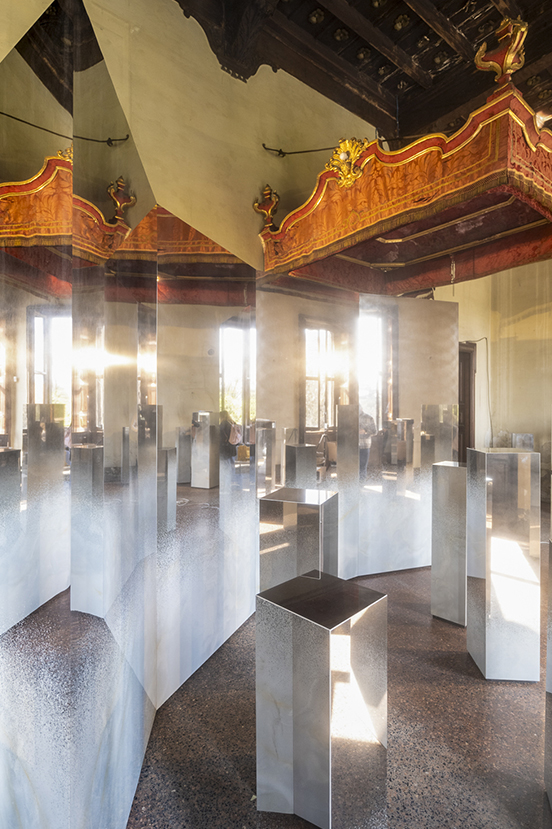 The objective, ambitious and intriguing at the same time, is to harness the decadent charm of Villa Bagatti Valsecchi, an authentic jewel of residential architecture, to bring it inside the installation through games of reflection.