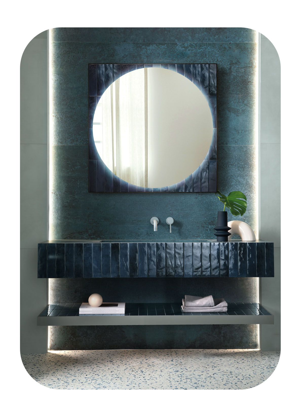 An original design that adds personality and character to the mirror, creating harmony with the ceramic surfaces.