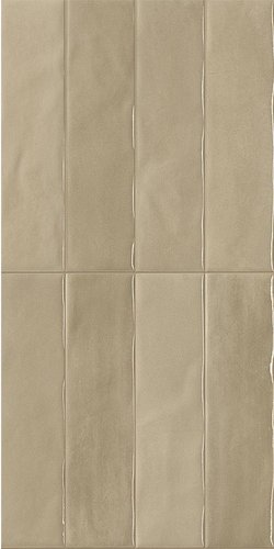 Glossy glazed ceramic tile in taupe shade, blurred and reflective surface, vertical rectangular format.