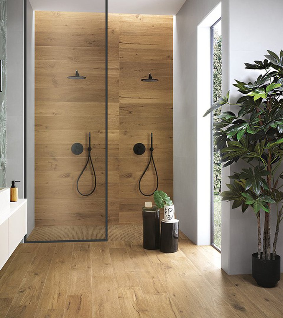 Porcelain stoneware is an ideal choice for designing bathroom interiors that offer safety, functionality and beautiful aesthetics.