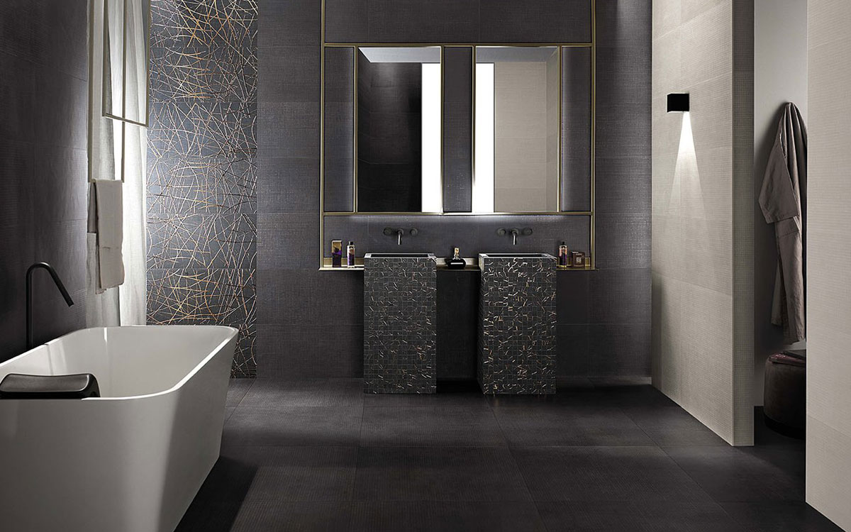 A Black & White bath looks great in any home, in any setting, probably because black bathroom tiles bring depth and elegance, while the white lights up the whole.