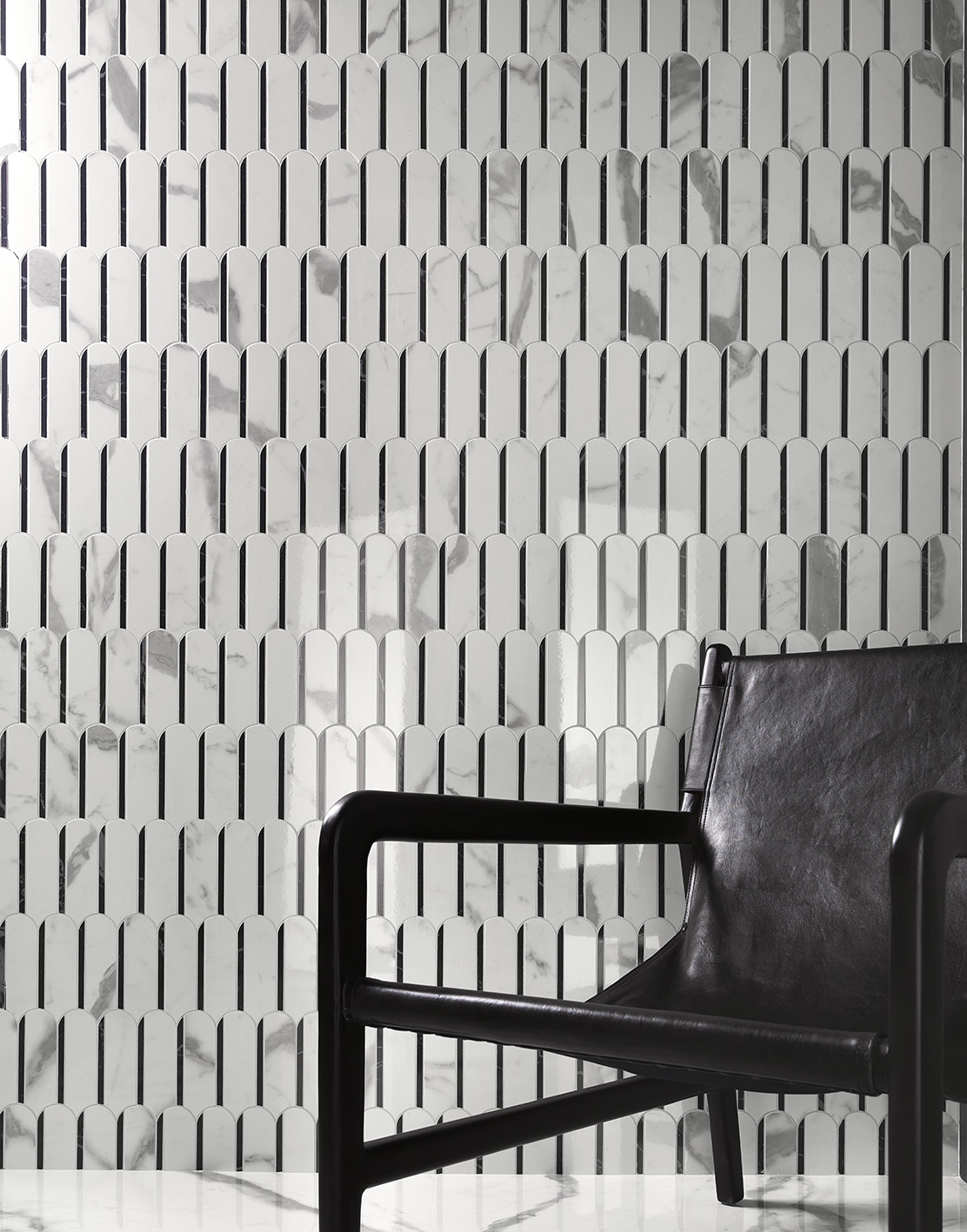 In the extra-large 120x278 size, Roma Gold also offers two different patterns: Flower Inserto, with a cascade of roses and striking colour effects, and the series of arches in endless shades of black and white featured on the Decoro City Inserto Mix.