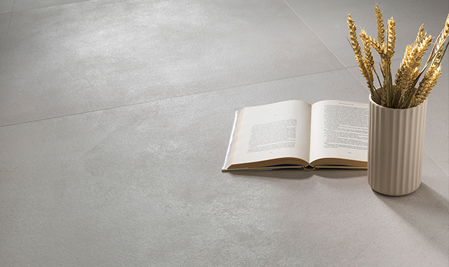 Flooring in R9 stoneware, in the 120x120 size, in R10 stoneware in the 80x160, 80x80 and 40x80 sizes, and with a new Satin finish in the 80x80 size. Stoneware floors boast an exceptionally rich material appeal, with a full-bodied effect marked by shading and streaking and enhanced by mineral notes that sparkle and create different nuances that change according to the light.