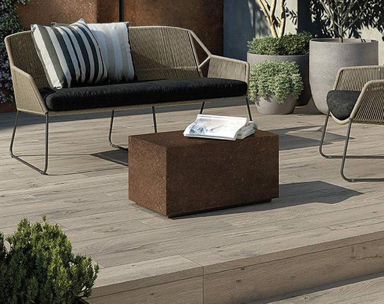 Porcelain stoneware is definitely the best terrace paving material, due to its intrinsic qualities: