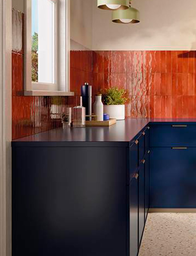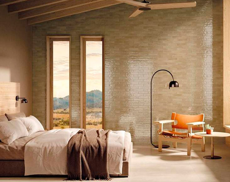 Take GLIM, for example: glossy porcelain stoneware brick tiles with vibrant finishes and metallic highlights that give dynamism to walls.