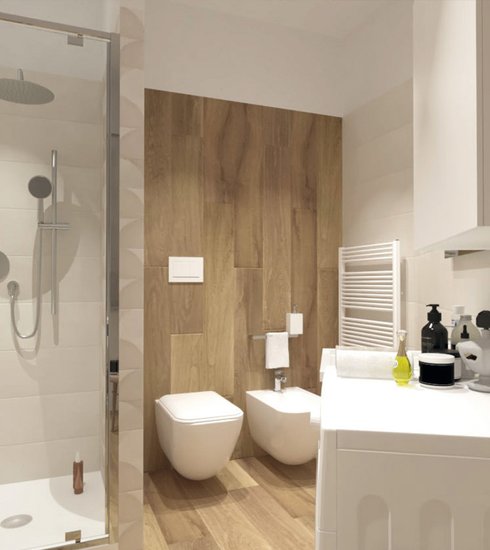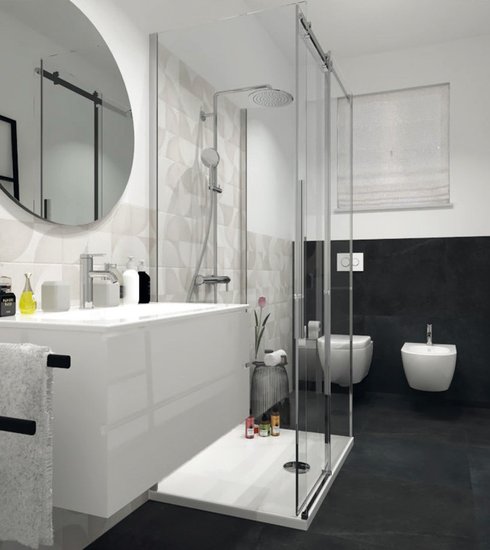 Room view Bathroom, created with tiles from the collection: MAT&MORE – Grey, White, Beige