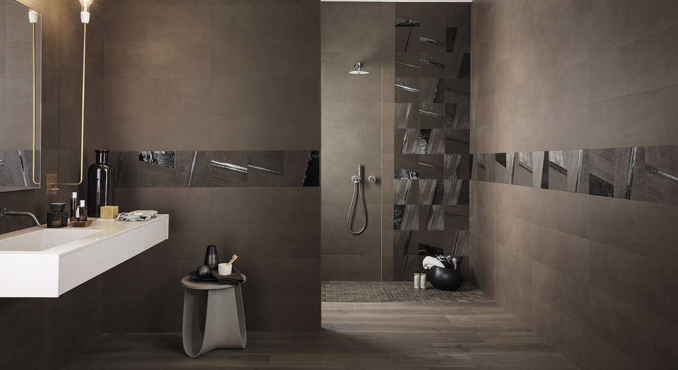 Room view Bathroom, created with tiles from the collection: MAT&MORE – Brown, Blue, Other