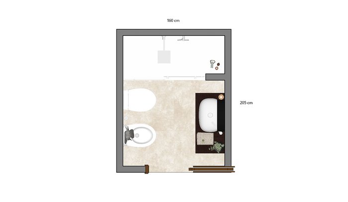 Bathroom design image in Rectangular shape, created with floor tiles NOBU and wall tiles STILL, TRUE COLOR