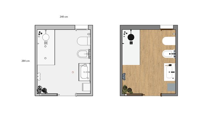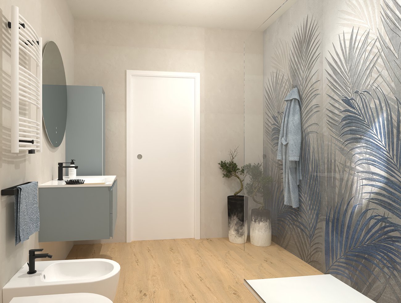 Bathroom design image in Rectangular shape, created with floor tiles ROOTS and wall tiles BLOOM