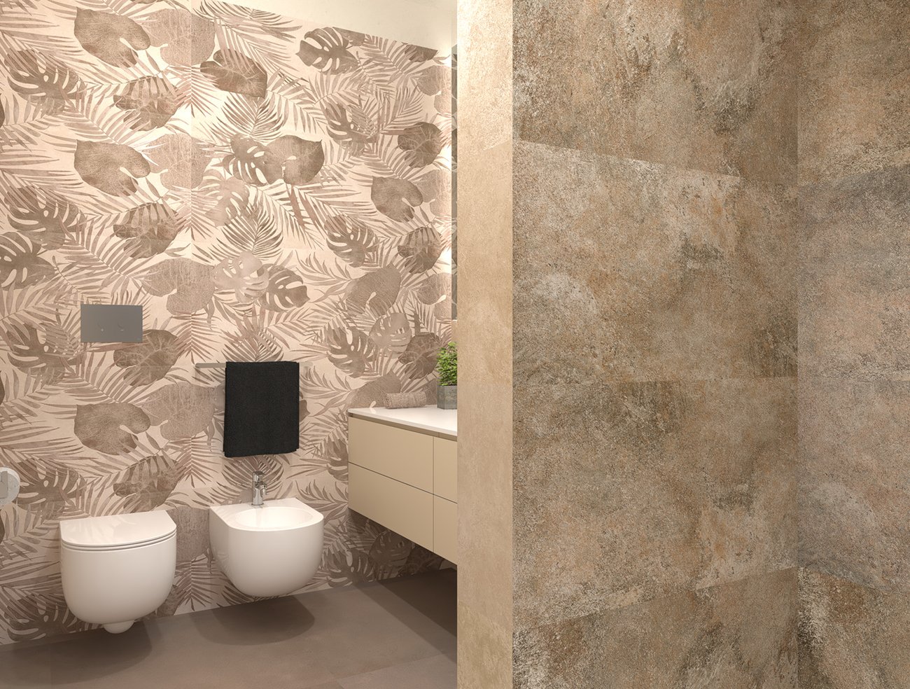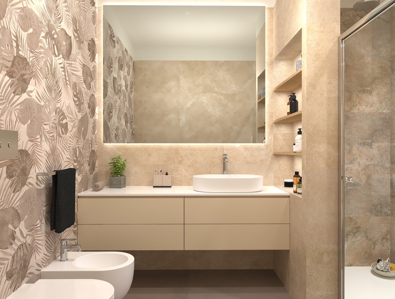 Bathroom design image in Rectangular shape, created with floor tiles SUMMER and wall tiles YLICO, NOBU
