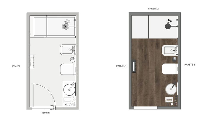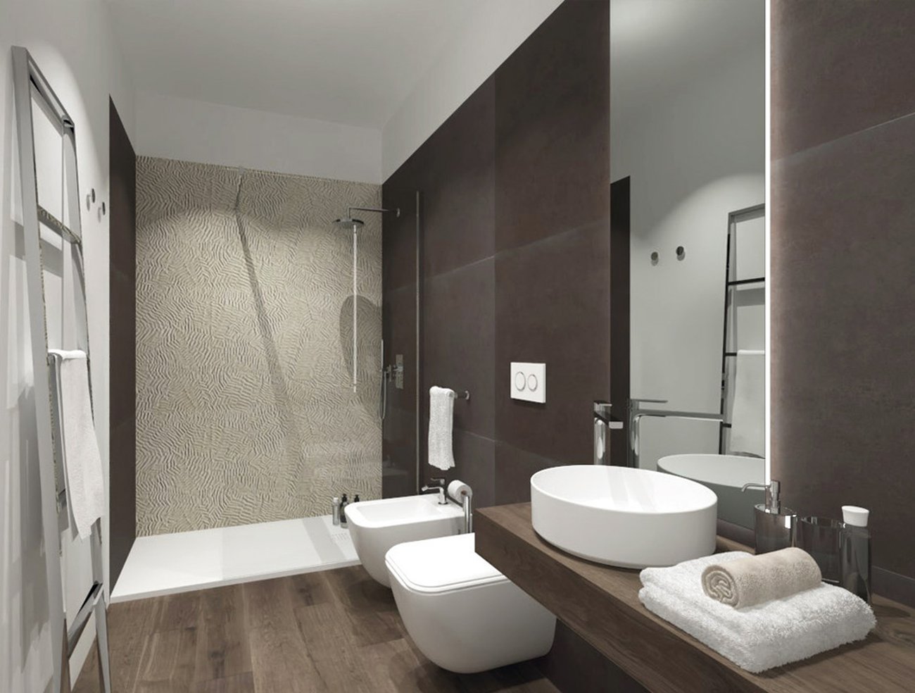 Bathroom design image in Rectangular shape, created with floor tiles FAPNEST and wall tiles BLOOM