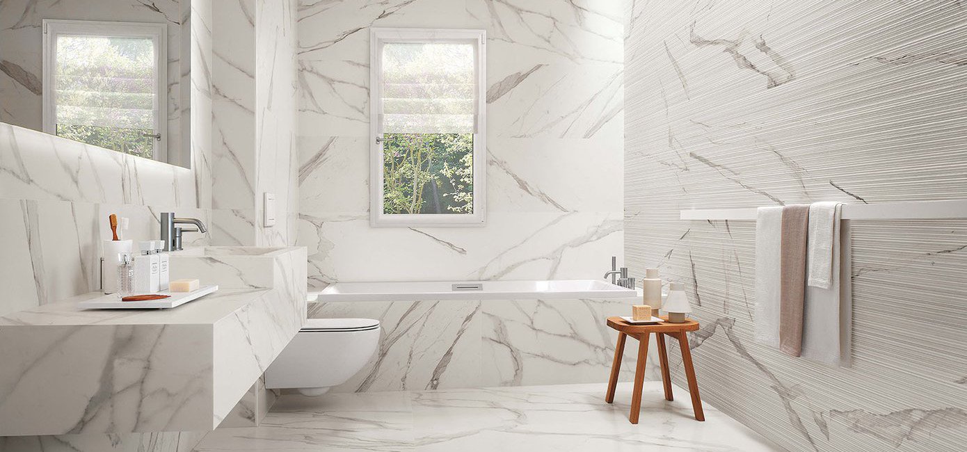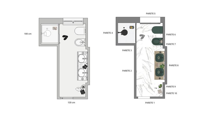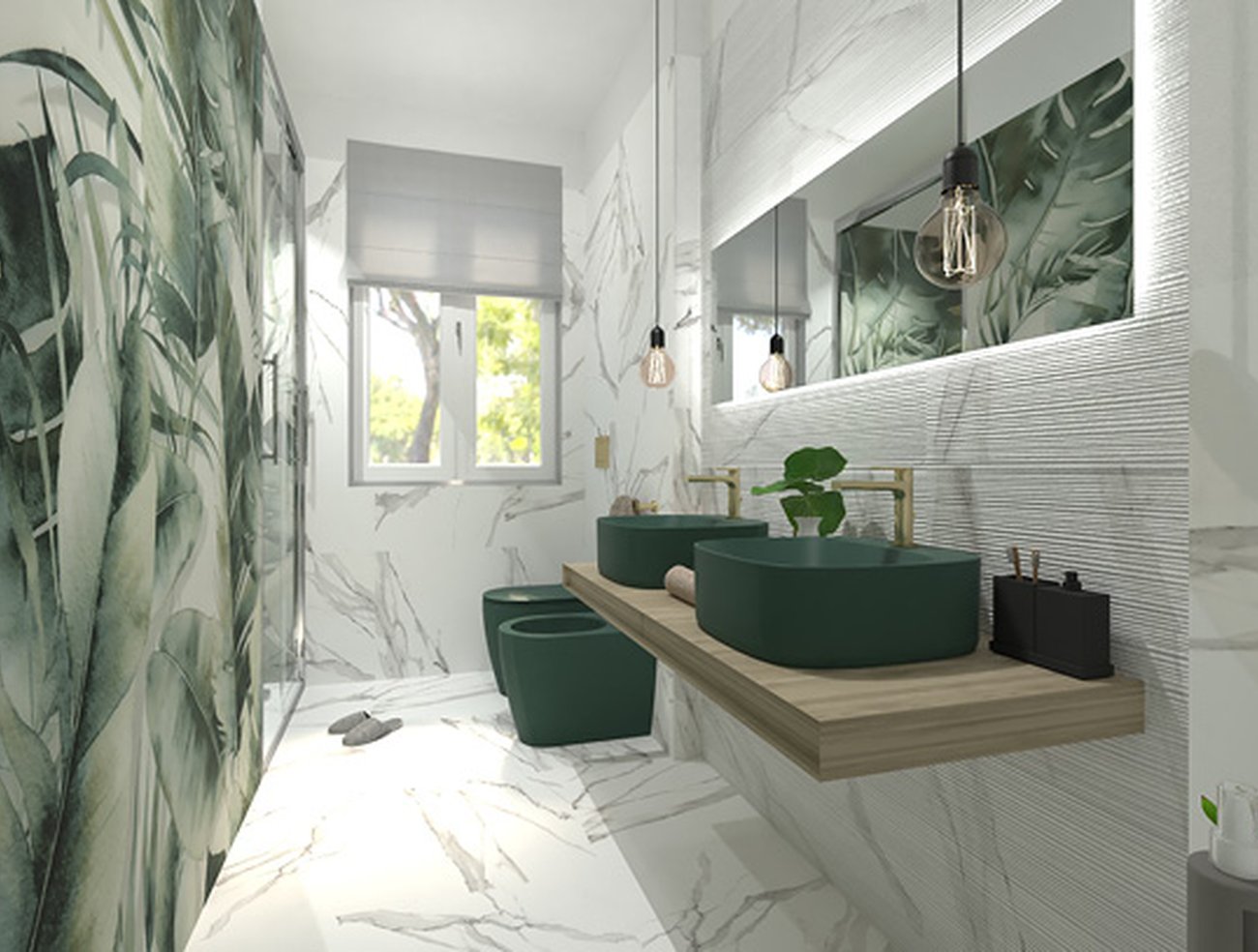 Bathroom design image in Rectangular shape, created with floor tiles ROMA and wall tiles ROMA, BLOOM