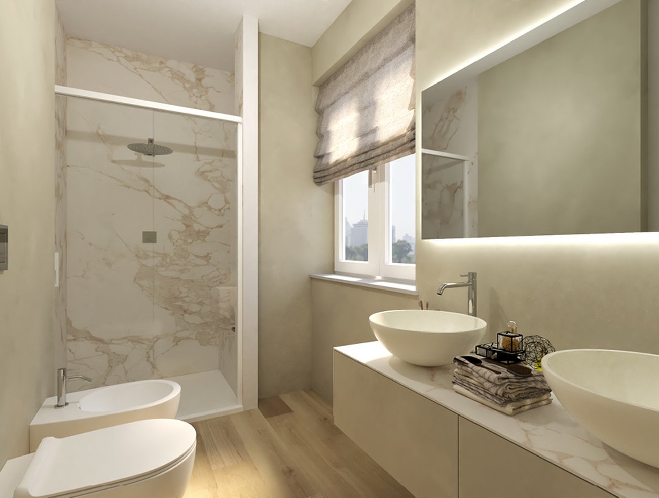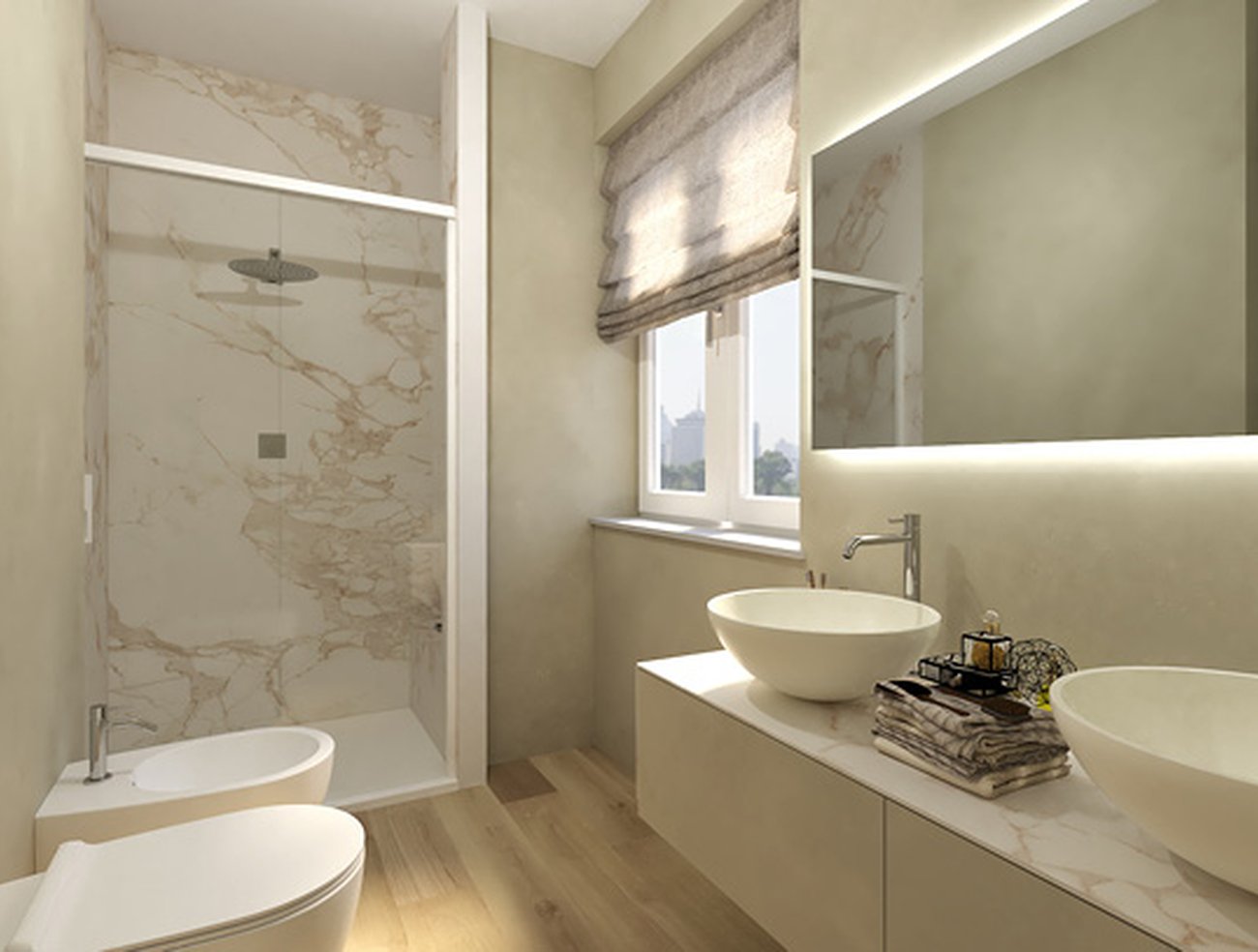 Bathroom design image in Rectangular shape, created with floor tiles FAPNEST and wall tiles ROMA, FAP MAXXI 120x278