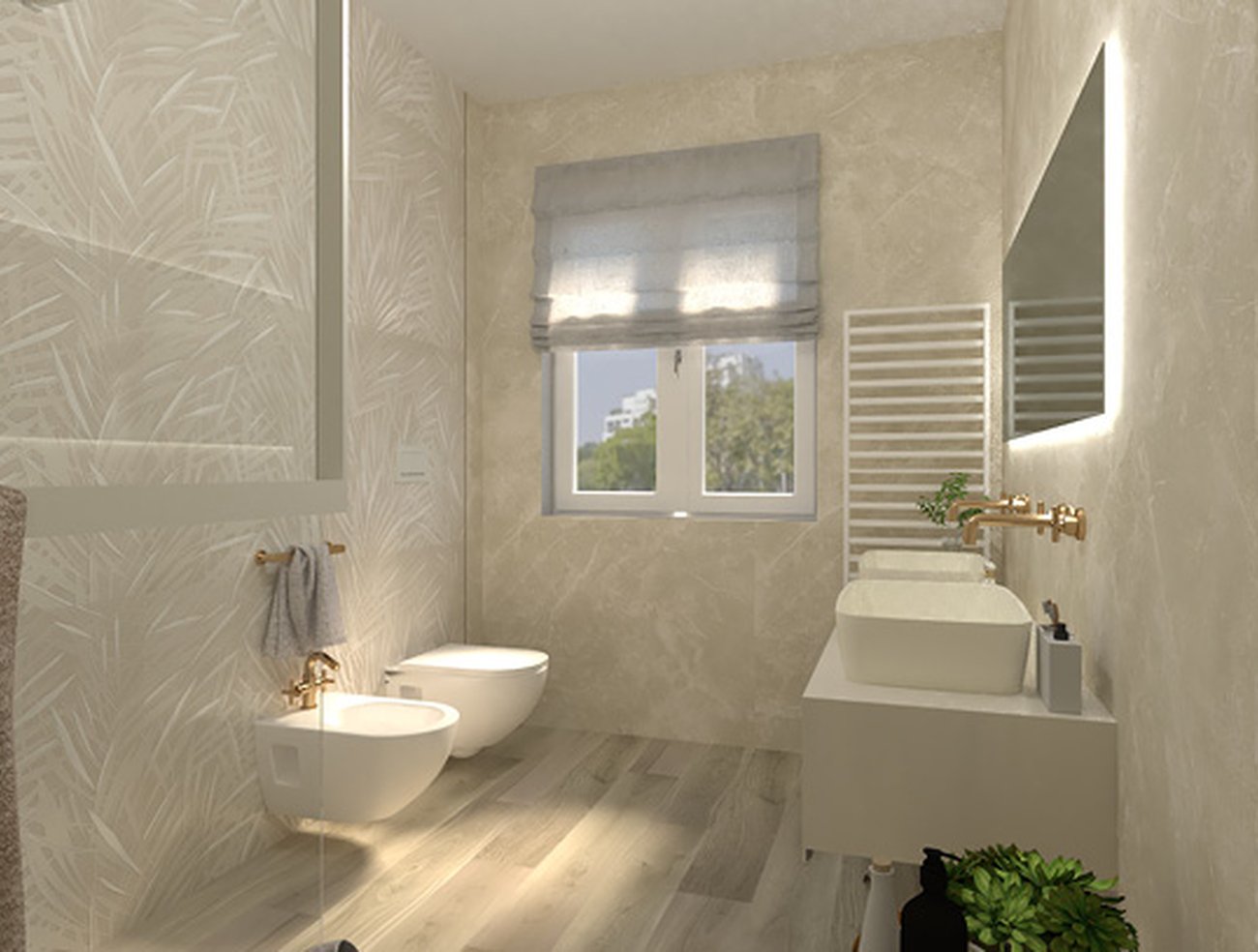 Bathroom design image in Rectangular shape, created with floor tiles FAPNEST and wall tiles SHEER, ROMA
