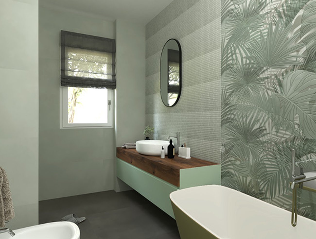 Bathroom design image in Rectangular shape, created with floor tiles MILANO MOOD and wall tiles MILANO MOOD