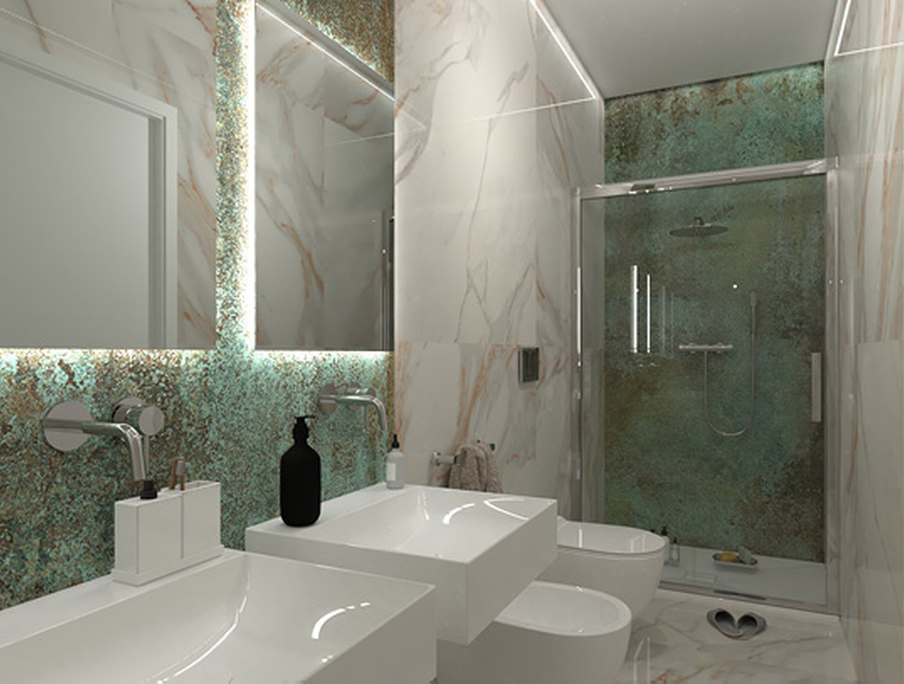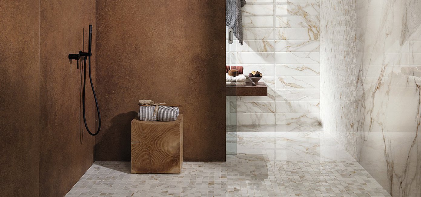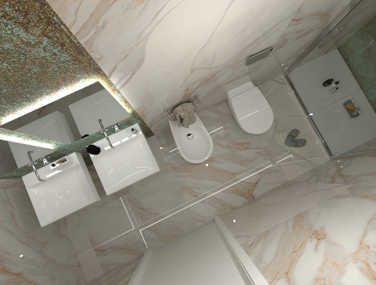 Bathroom design image in Rectangular shape, created with floor tiles ROMA GOLD and wall tiles ROMA GOLD
