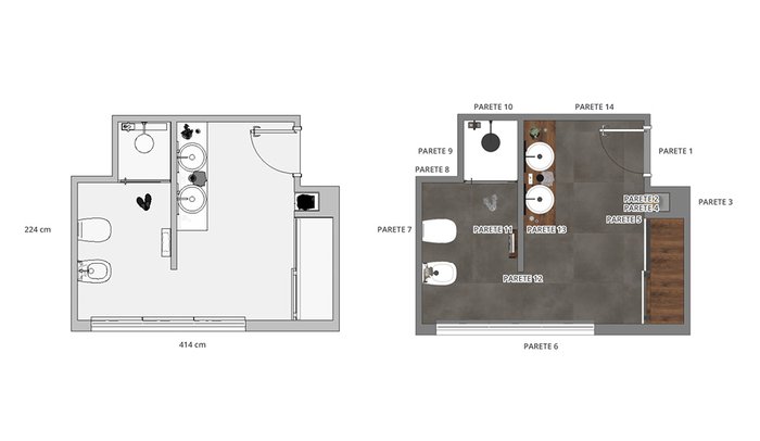 Bathroom design image in Squared shape, created with floor tiles MILANO MOOD and wall tiles BLOOM, MILANO MOOD
