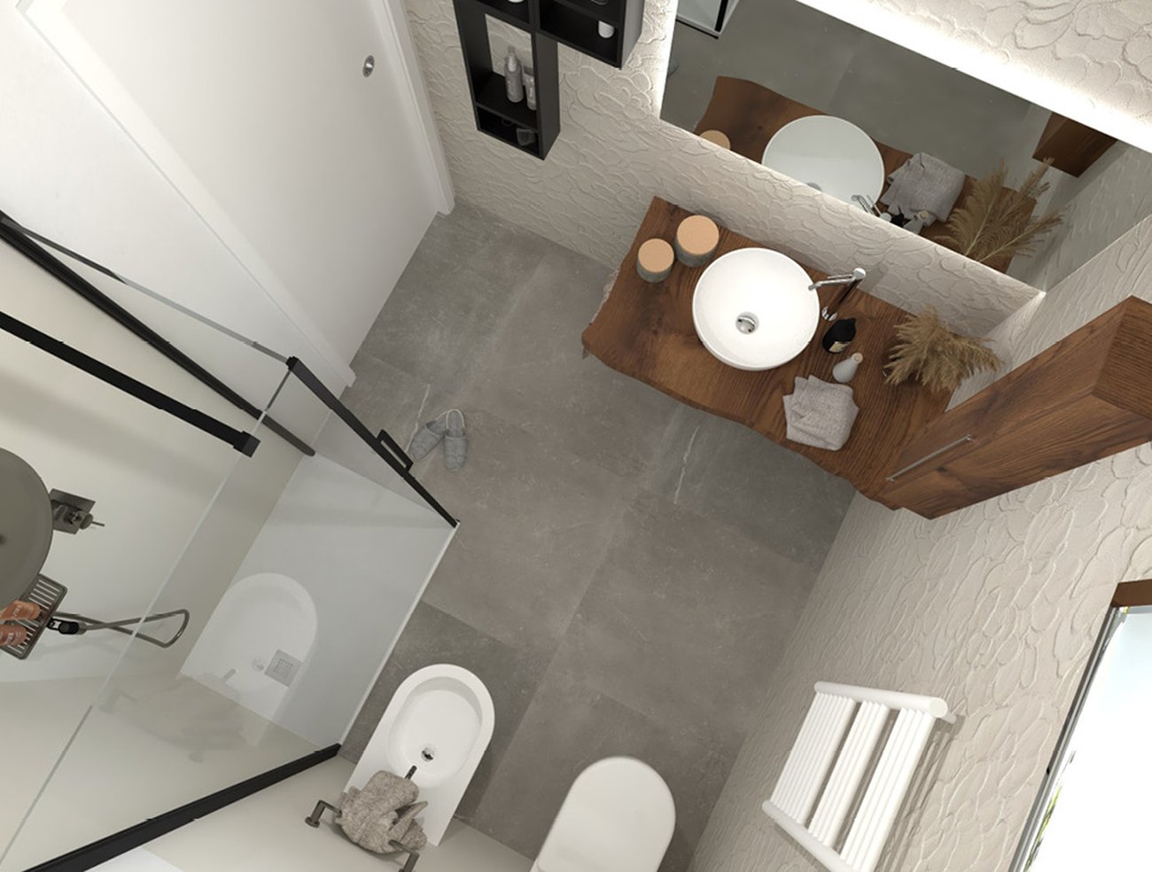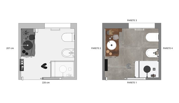 Bathroom design image in Squared shape, created with floor tiles MAKU and wall tiles LUMINA SAND ART