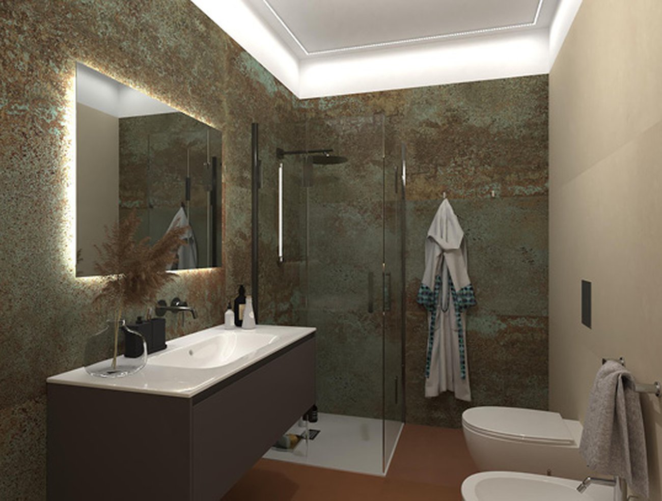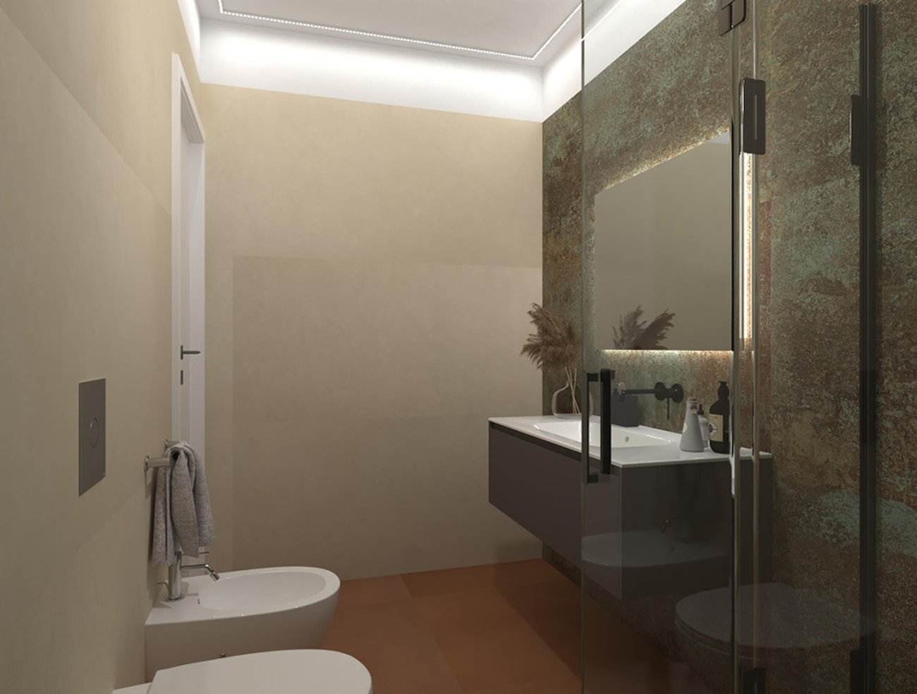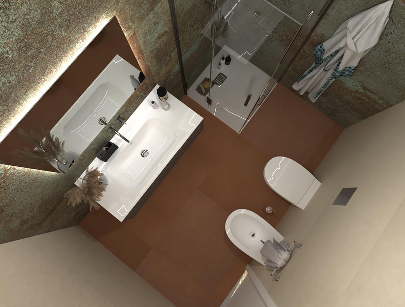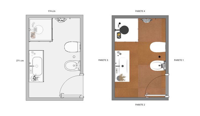 Bathroom design image in Rectangular shape, created with floor tiles SUMMER and wall tiles SHEER