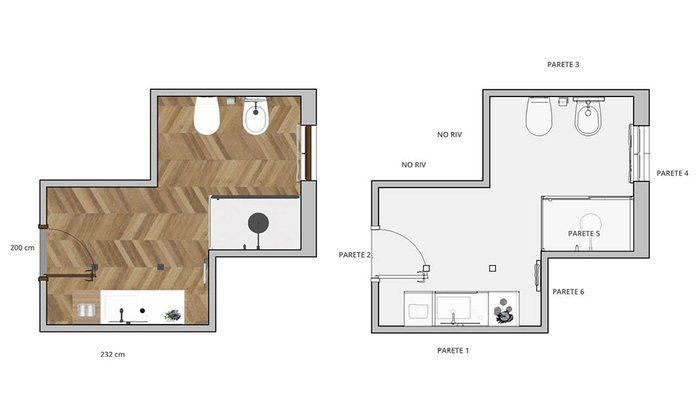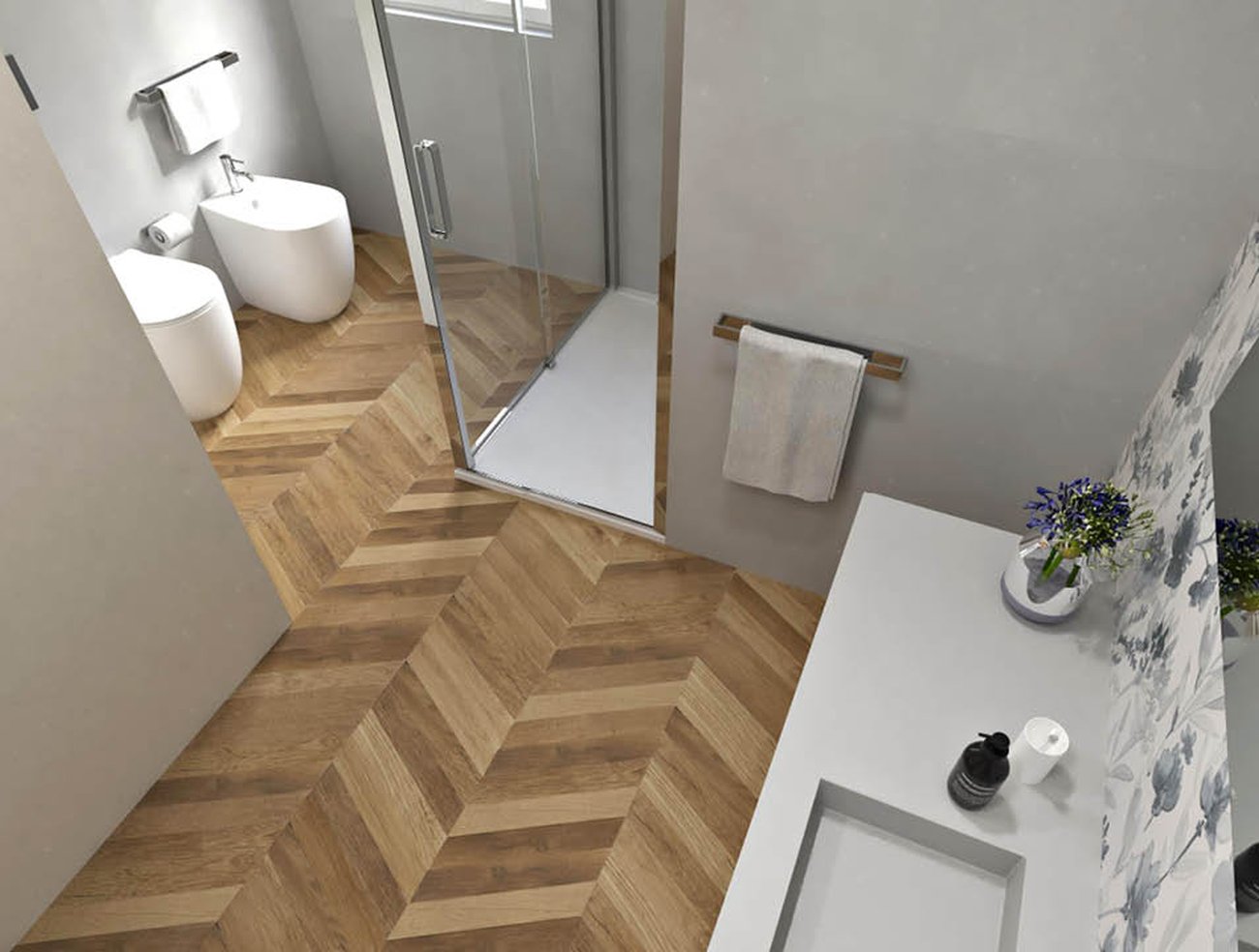 Bathroom design image in Squared shape, created with floor tiles FAPNEST and wall tiles MILANO MOOD