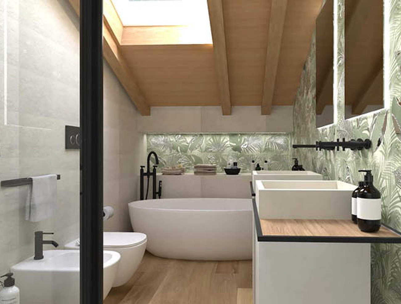 Bathroom design image in Rectangular shape, created with floor tiles FAPNEST and wall tiles DECO&MORE