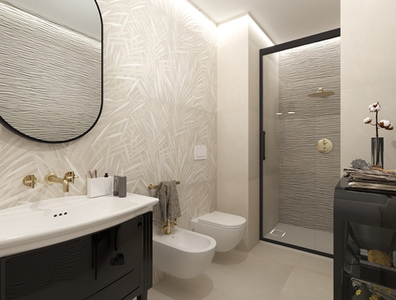 Bathroom design image in Rectangular shape, created with floor tiles SHEER and wall tiles SHEER