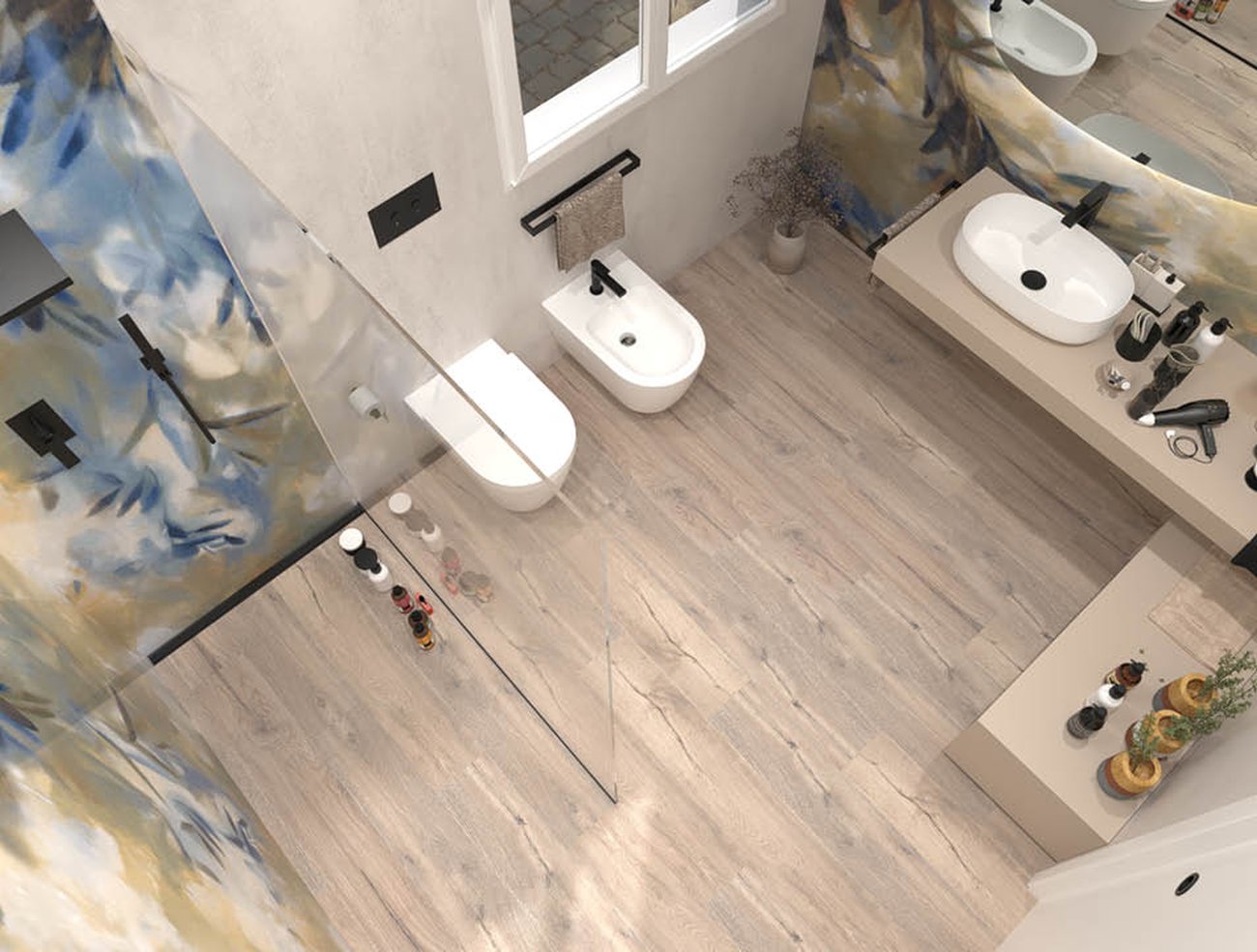 Bathroom design image in Rectangular shape, created with floor tiles ROOTS and wall tiles YLICO