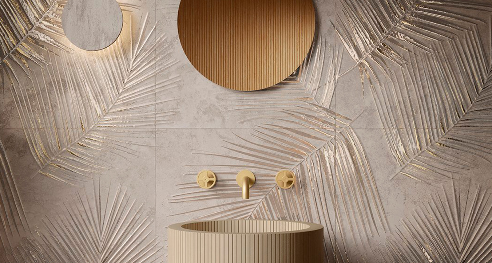 For people who prefer a more ornate, luxurious aesthetic, Vento del Sud also offers decorative tiles where the nature-inspired theme is interpreted in exquisite relief patterns, lacquered with gold and light.