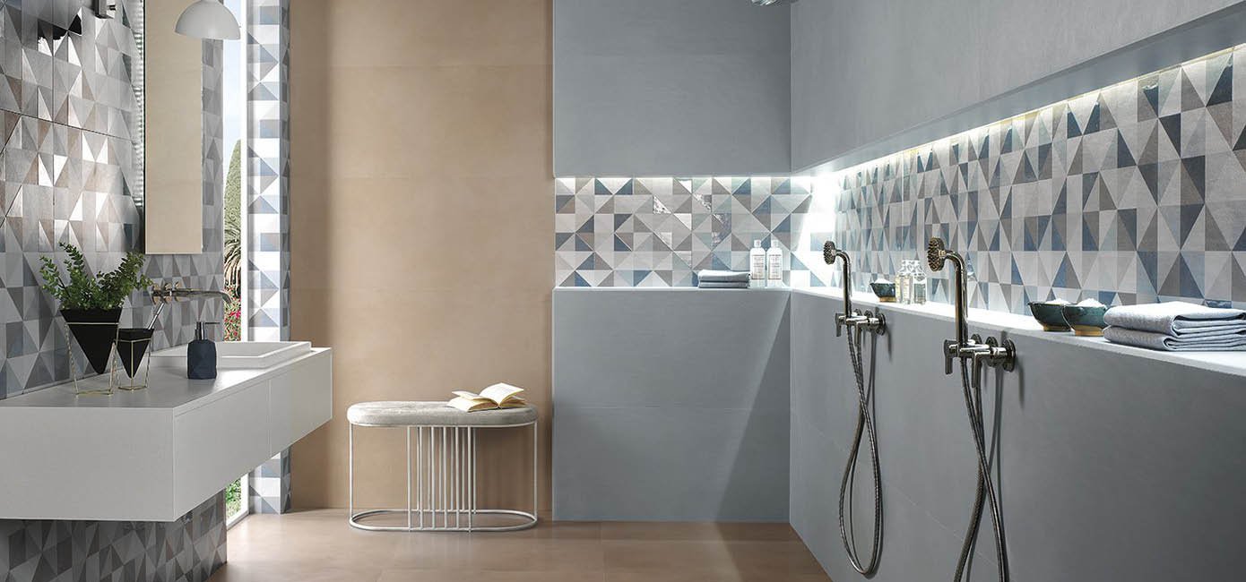 Imagen del proyecto de baño con forma Rectangular, realizada con baldosas de suelo MILANO MOOD y baldosas de pared MILANO MOOD