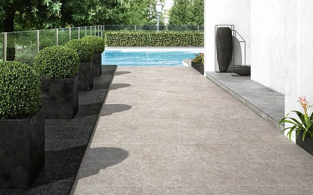 La solution idéale pour les sols est le grès cérame qui – grâce à la haute technologie et à la polyvalence du matériau – parvient à garantir en même temps beauté, fonctionnalité et sécurité, y compris dans les espaces exposés aux intempéries, sur les surfaces à fort piétinement et où l’eau règne en maître, comme dans la zone piscine.