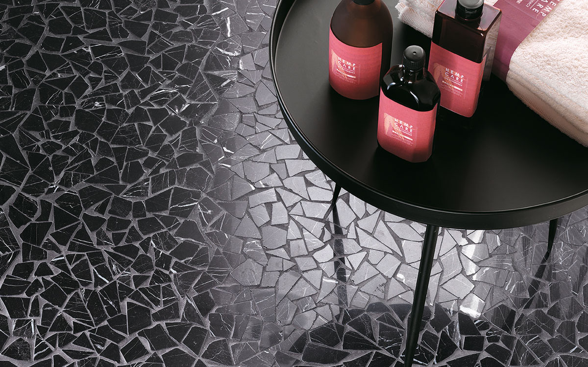 Pour finir, Roma Classic Mosaici en grès cérame, un must de la décoration contemporaine, que FAP Ceramiche a voulu interpréter selon quatre personnalités distinctes : des contemporains Mosaico Round et Macromosaico aux super naturels Micromosaico et Schegge.