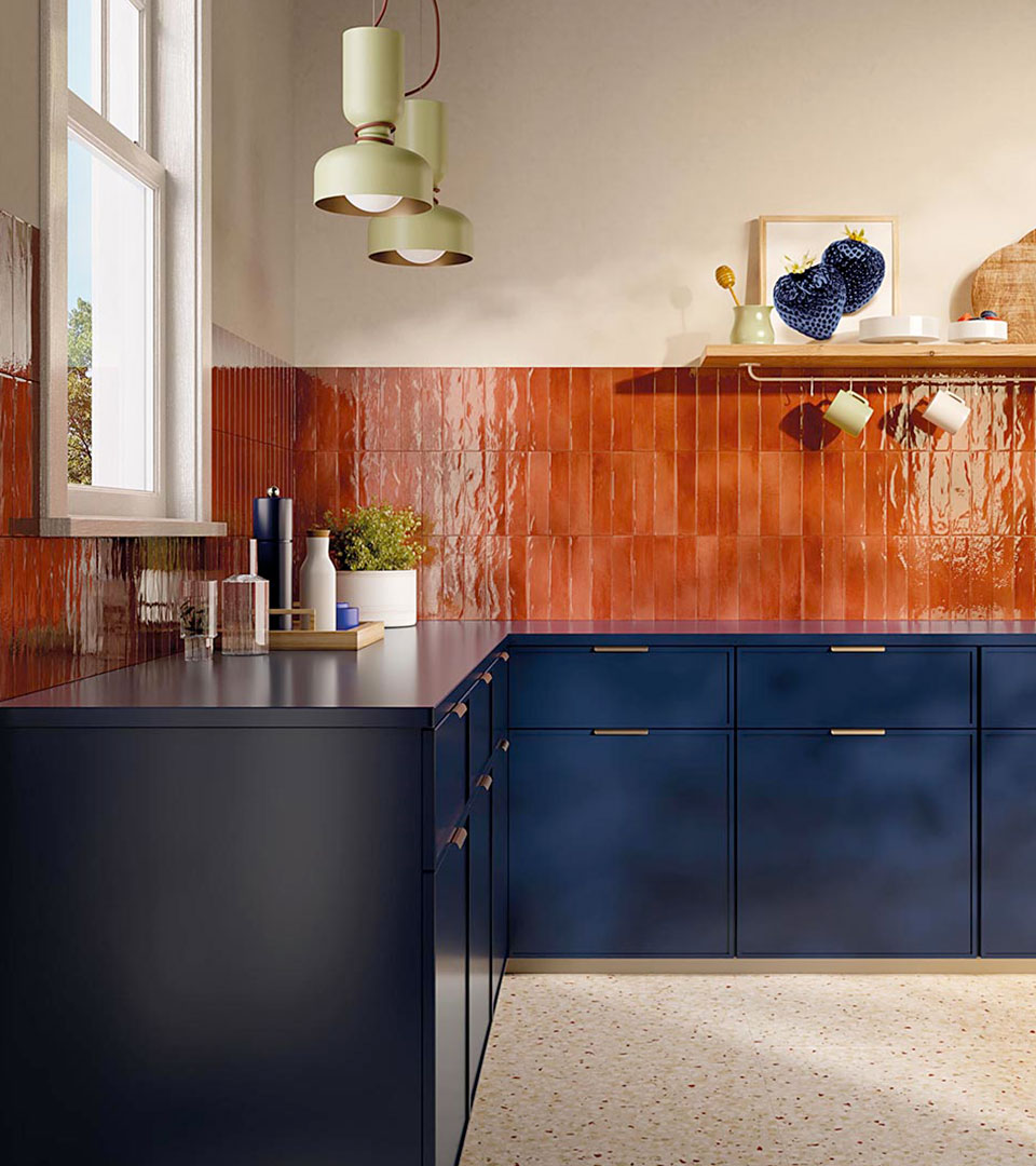 Si vous souhaitez un look moderne et élégant, les couleurs à la mode comme Salvia, Lavagna, Blu Navy, Petrolio, Grigio fumo et Avorio peuvent être le choix idéal, notamment si elles sont déclinées de manière intense et vive, comme celles de la nouvelle collection GLIM. Des « bricks » émaillés en grès cérame hyper colorés, matériques et brillants, en un mot « vitaminiques », capables de décorer les espaces avec des couleurs uniques et scintillantes. Des espaces publics aux environnements domestiques, les murs s’illuminent de tonalités vibrantes en offrant des associations inédites à même d’éclairer le design d’intérieur avec style.