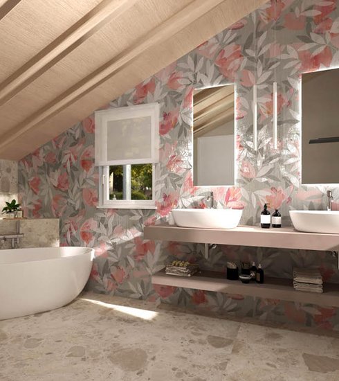La beauté s’épanouit sur le grand format et devient facile. Des Wall Tiles surprenants, à découvrir dans leur totalité ! Des bois, des jungles, des tapis floraux, des trames précieuses et des motifs géométriques enrichis d’éclats de lumière. Des murs infinis qui amplifient l’espace et offrent de la profondeur grâce à la superposition de textures, de couleurs chatoyantes et de décorations mates et glossy, emphatisées par le format 80x160.
