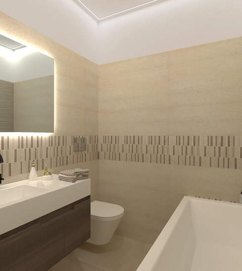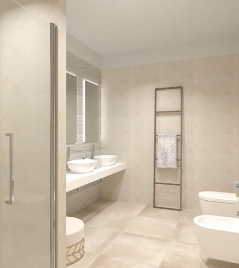 Image d'ambiance , réalisée avec des carreaux de la collection : MAKU – Beige
