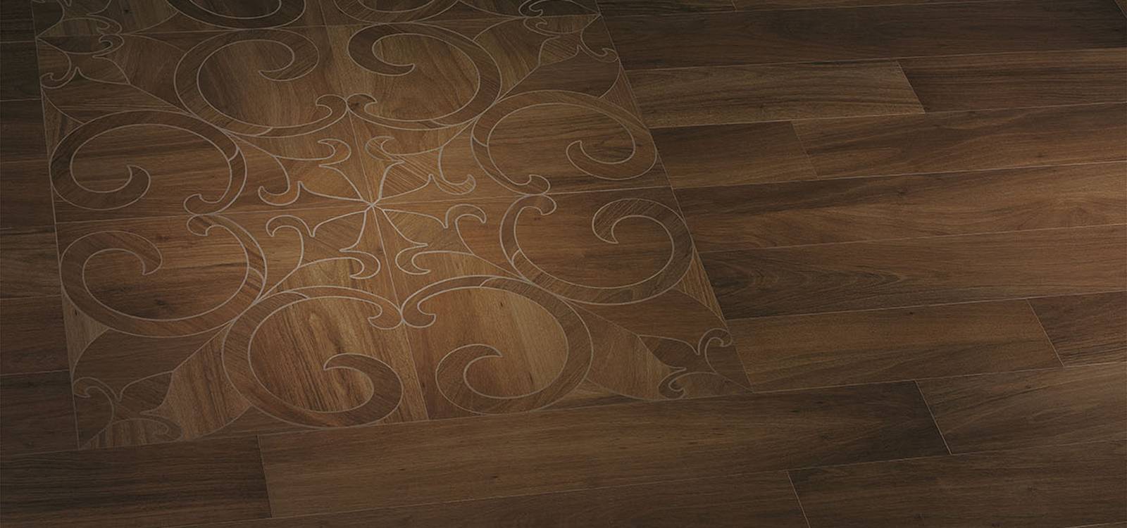 Image d'ambiance , réalisée avec des carreaux de la collection : NUANCES – Marron
