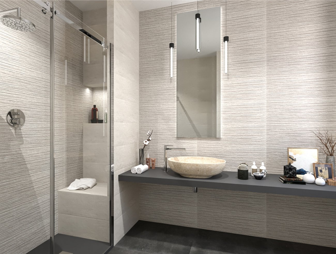 Image du projet de salle de bains de forme Rectangulaire, réalisée avec des carreaux de sol MAKU et carreaux muraux MAKU