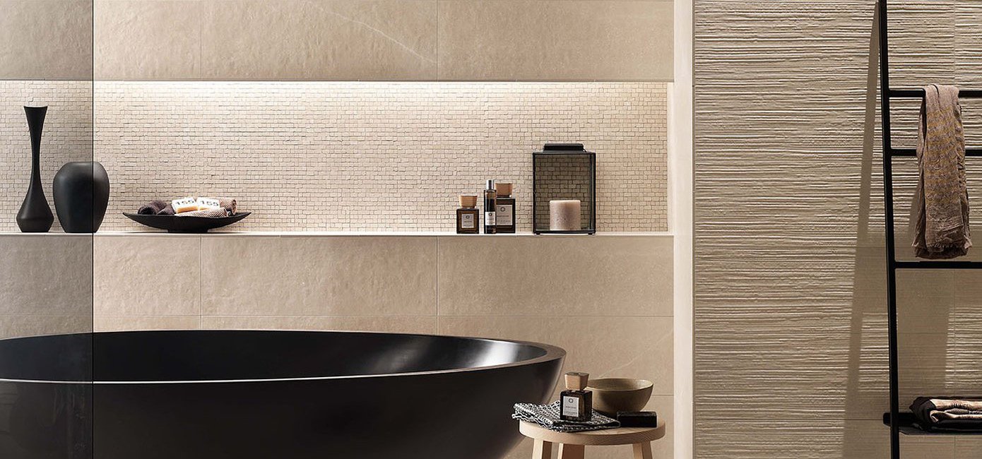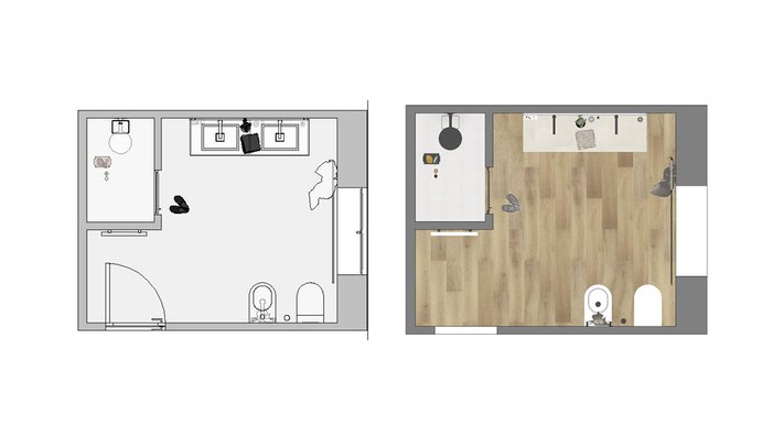 Image du projet de salle de bains de forme Au carré, réalisée avec des carreaux de sol FAPNEST et carreaux muraux MAKU