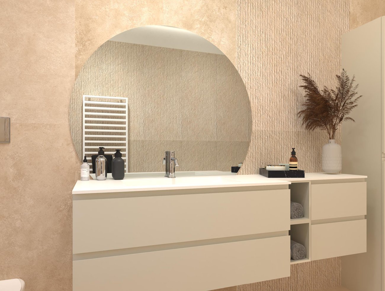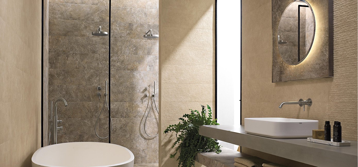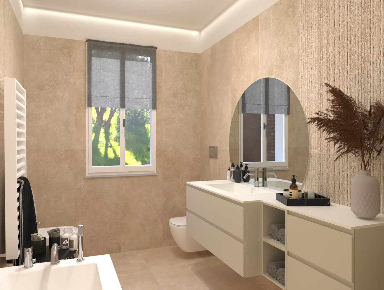 Immagine di progetto bagno di forma Rettangolare, realizzato con piastrelle a pavimento NOBU e piastrelle a rivestimento NOBU