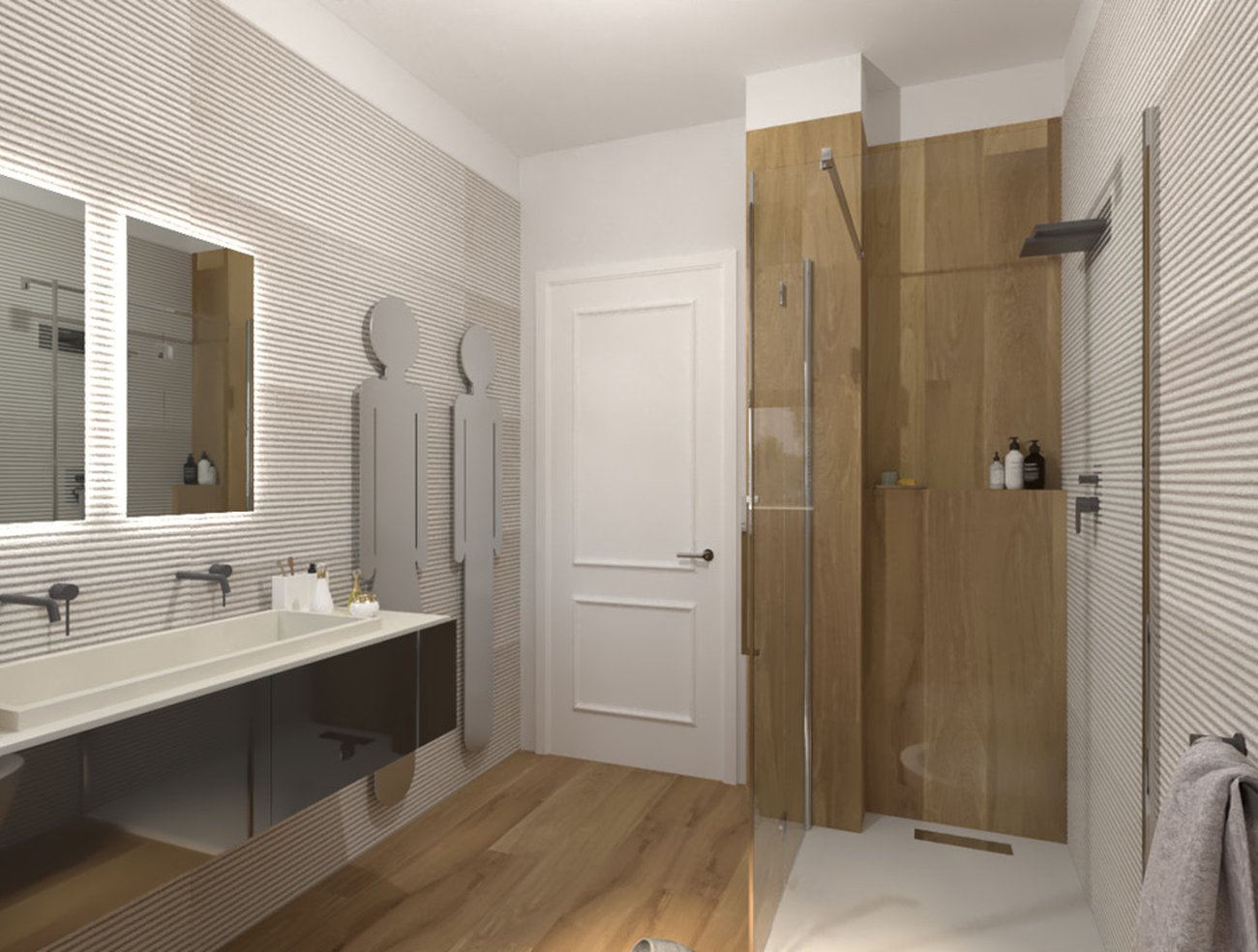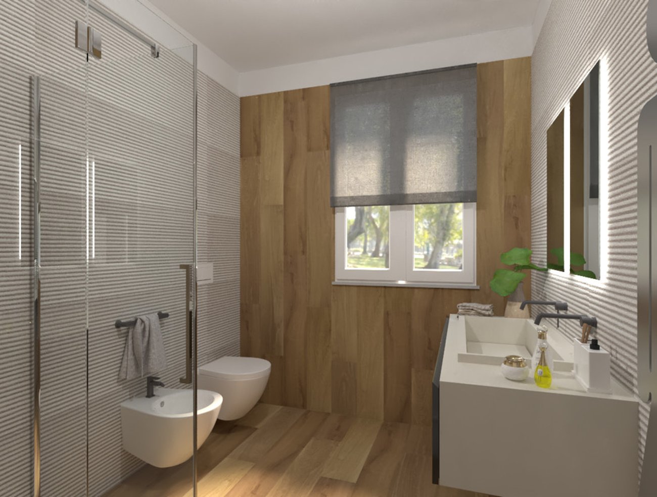 Immagine di progetto bagno di forma Rettangolare, realizzato con piastrelle a pavimento FAPNEST e piastrelle a rivestimento LUMINA SAND ART, FAPNEST