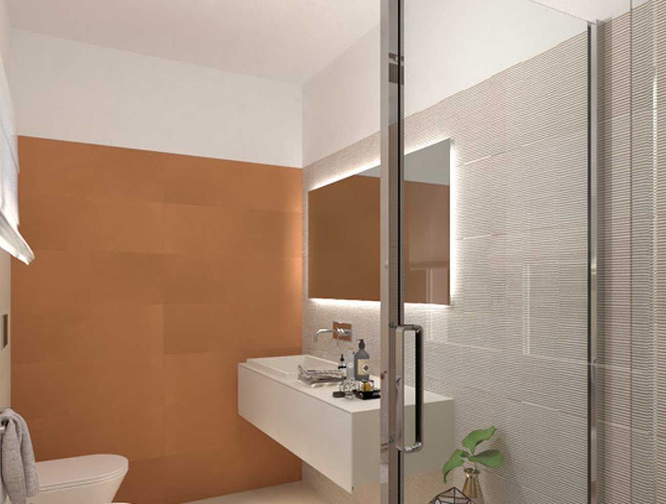 Immagine di progetto bagno di forma Rettangolare, realizzato con piastrelle a pavimento SUMMER e piastrelle a rivestimento SUMMER