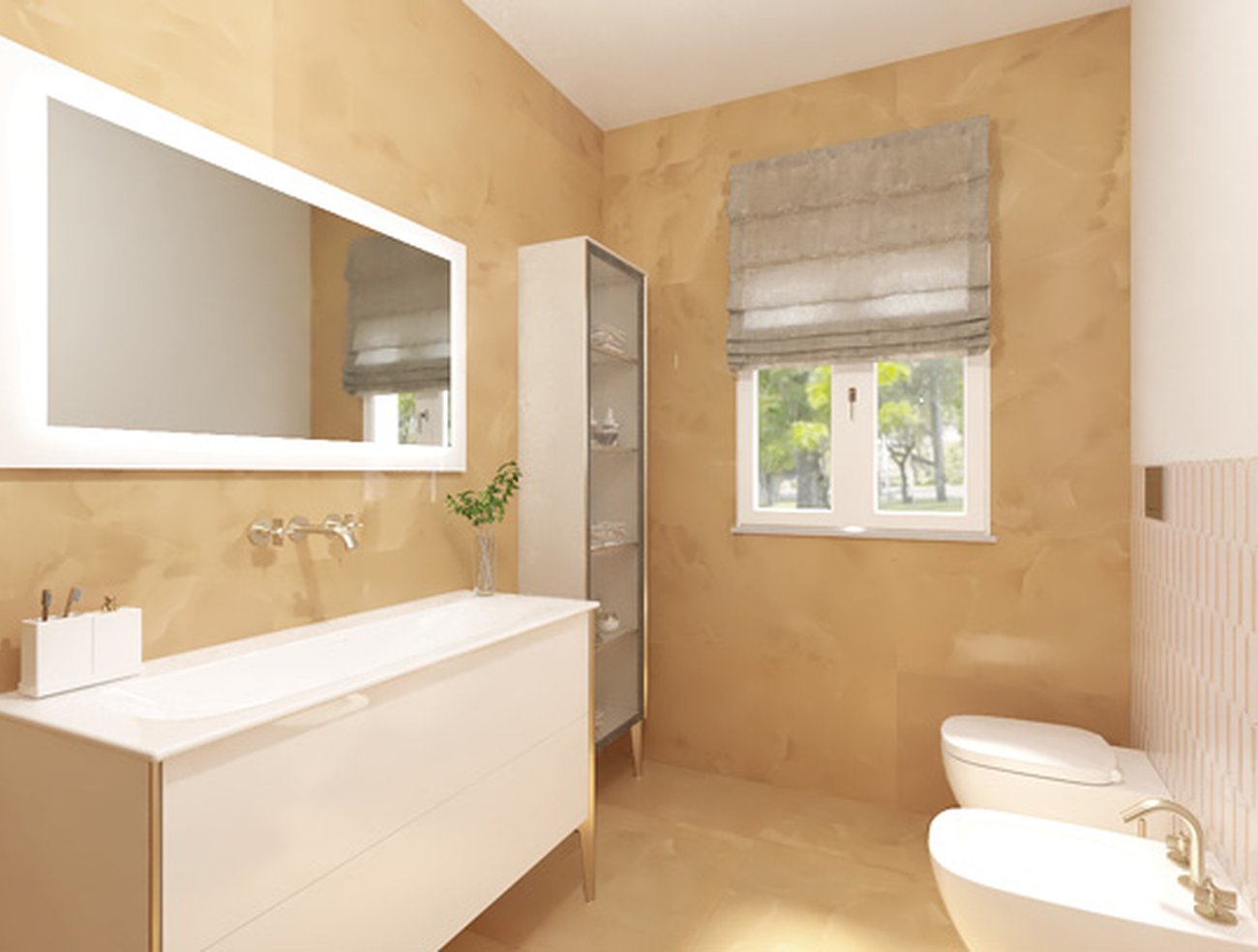 Immagine di progetto bagno di forma Rettangolare, realizzato con piastrelle a pavimento ROMA GOLD e piastrelle a rivestimento ROMA GOLD