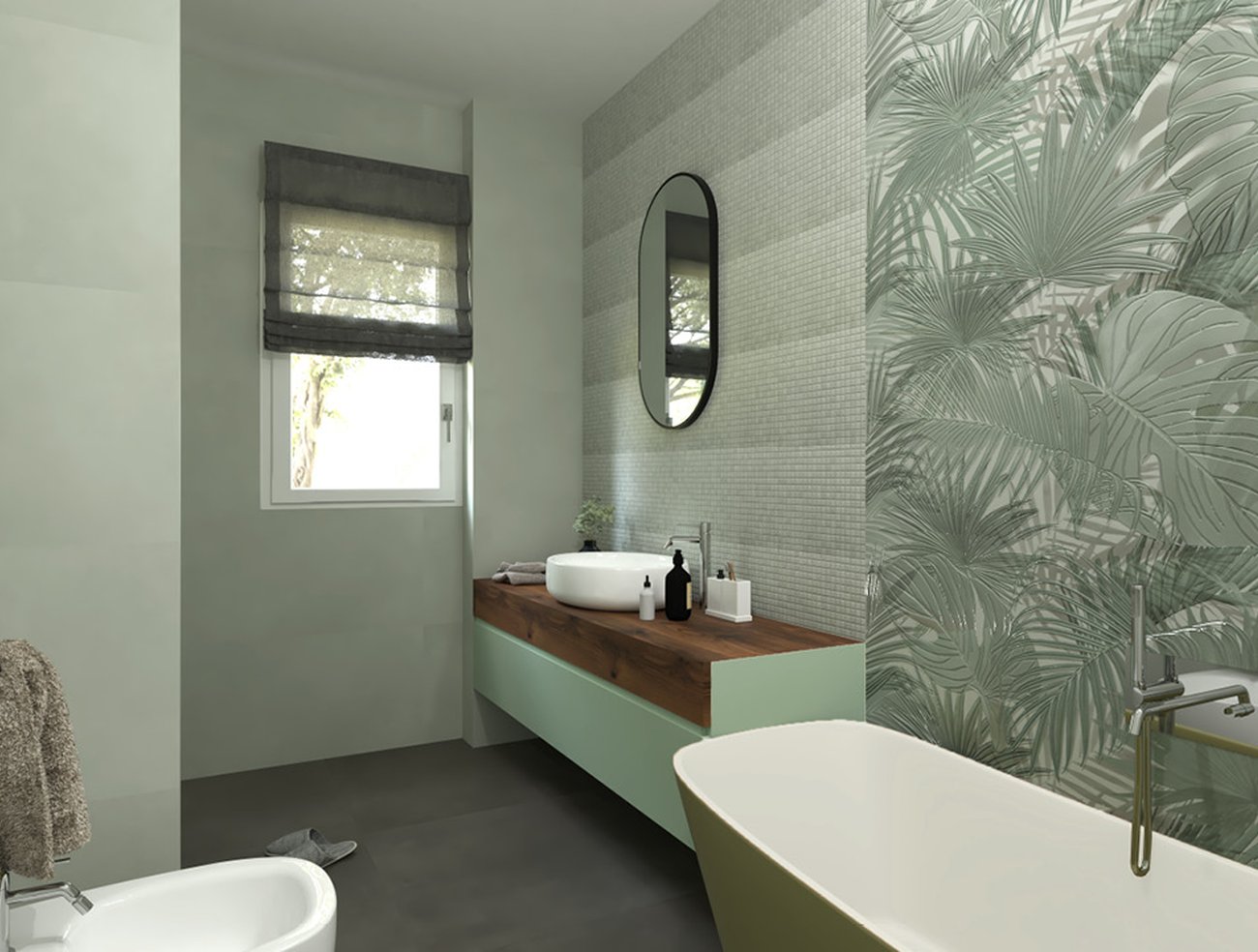 Immagine di progetto bagno di forma Rettangolare, realizzato con piastrelle a pavimento MILANO MOOD e piastrelle a rivestimento MILANO MOOD
