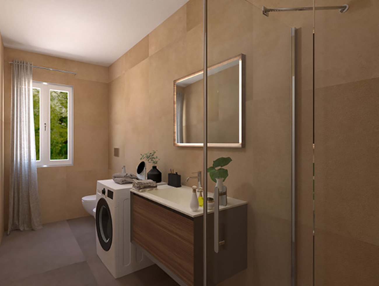 Immagine di progetto bagno di forma Rettangolare, realizzato con piastrelle a pavimento SUMMER e piastrelle a rivestimento SUMMER