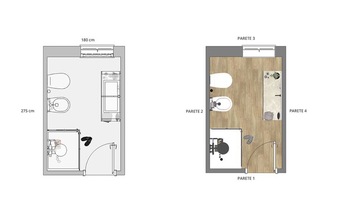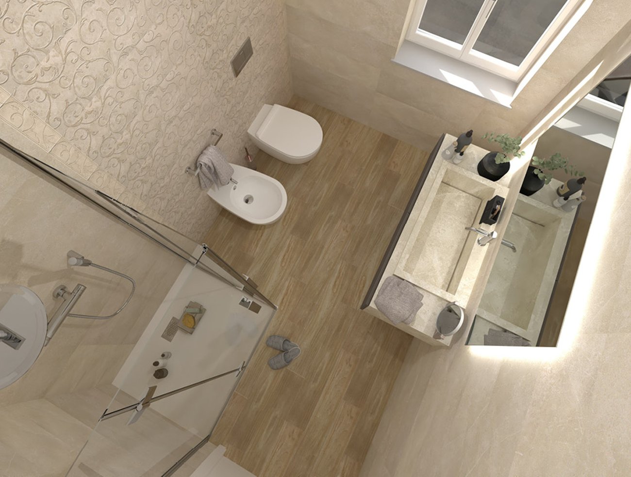 Immagine di progetto bagno di forma Rettangolare, realizzato con piastrelle a pavimento FAPNEST e piastrelle a rivestimento ROMA