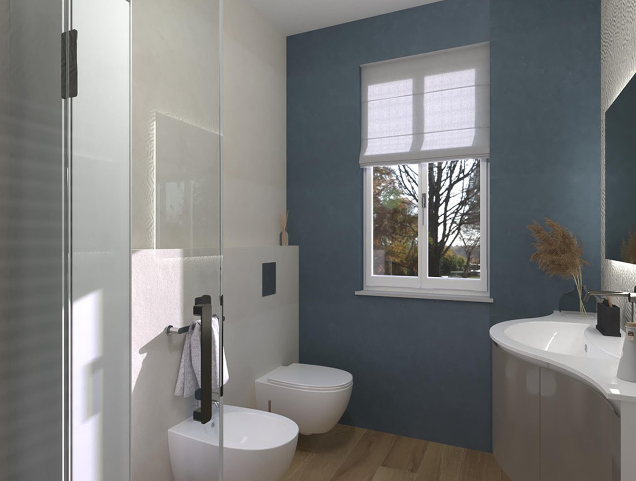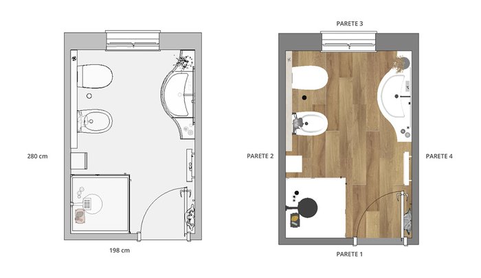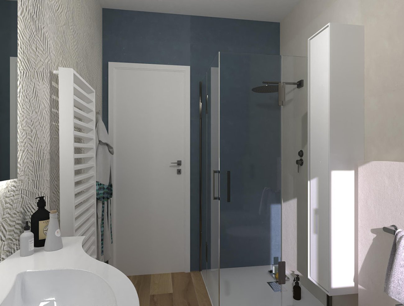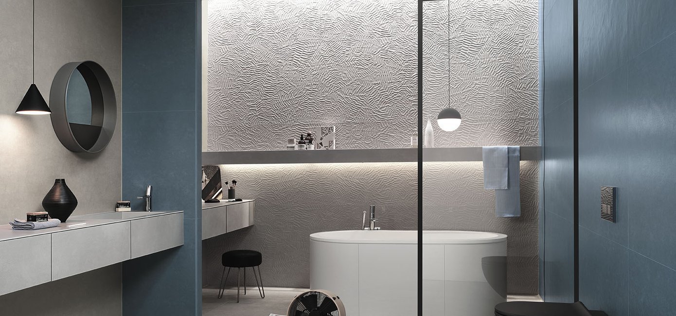 Immagine di progetto bagno di forma Rettangolare, realizzato con piastrelle a pavimento FAPNEST e piastrelle a rivestimento BLOOM