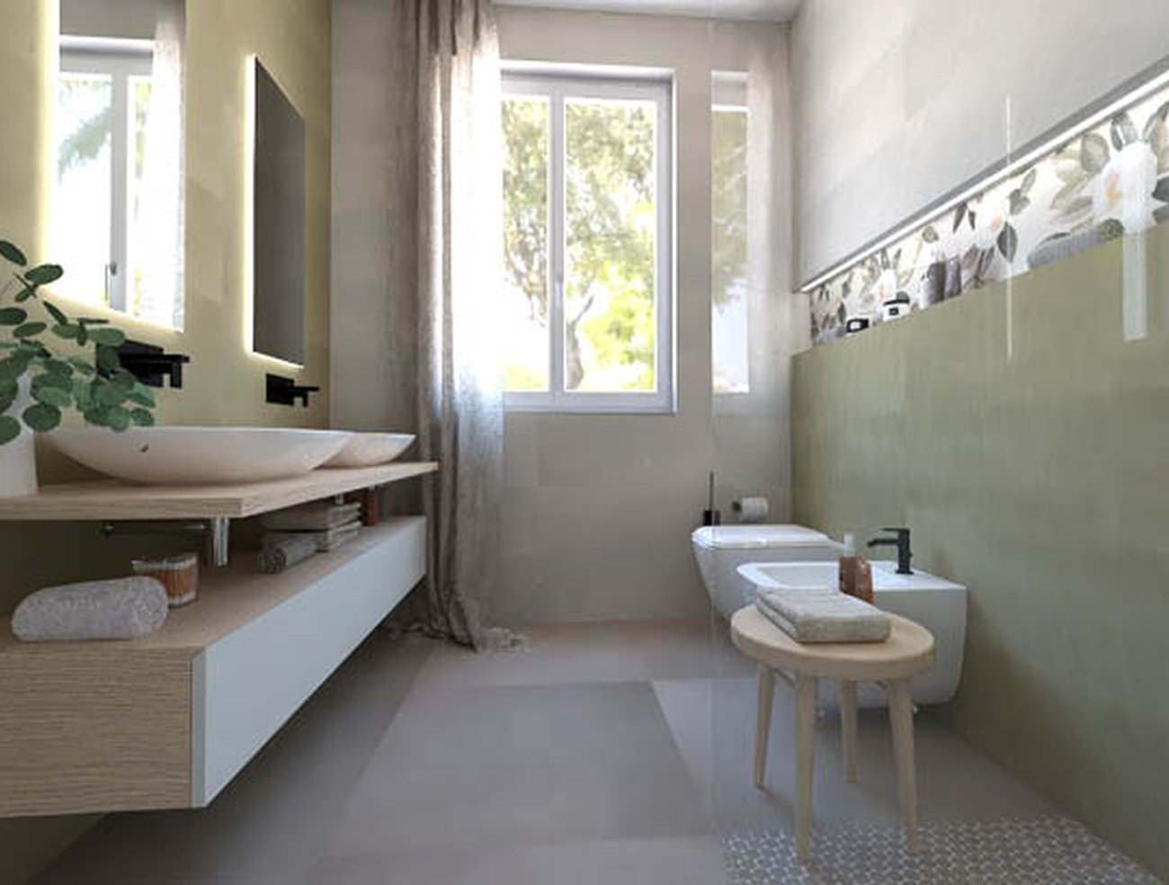 Immagine di progetto bagno di forma Rettangolare, realizzato con piastrelle a pavimento SUMMER e piastrelle a rivestimento SUMMER