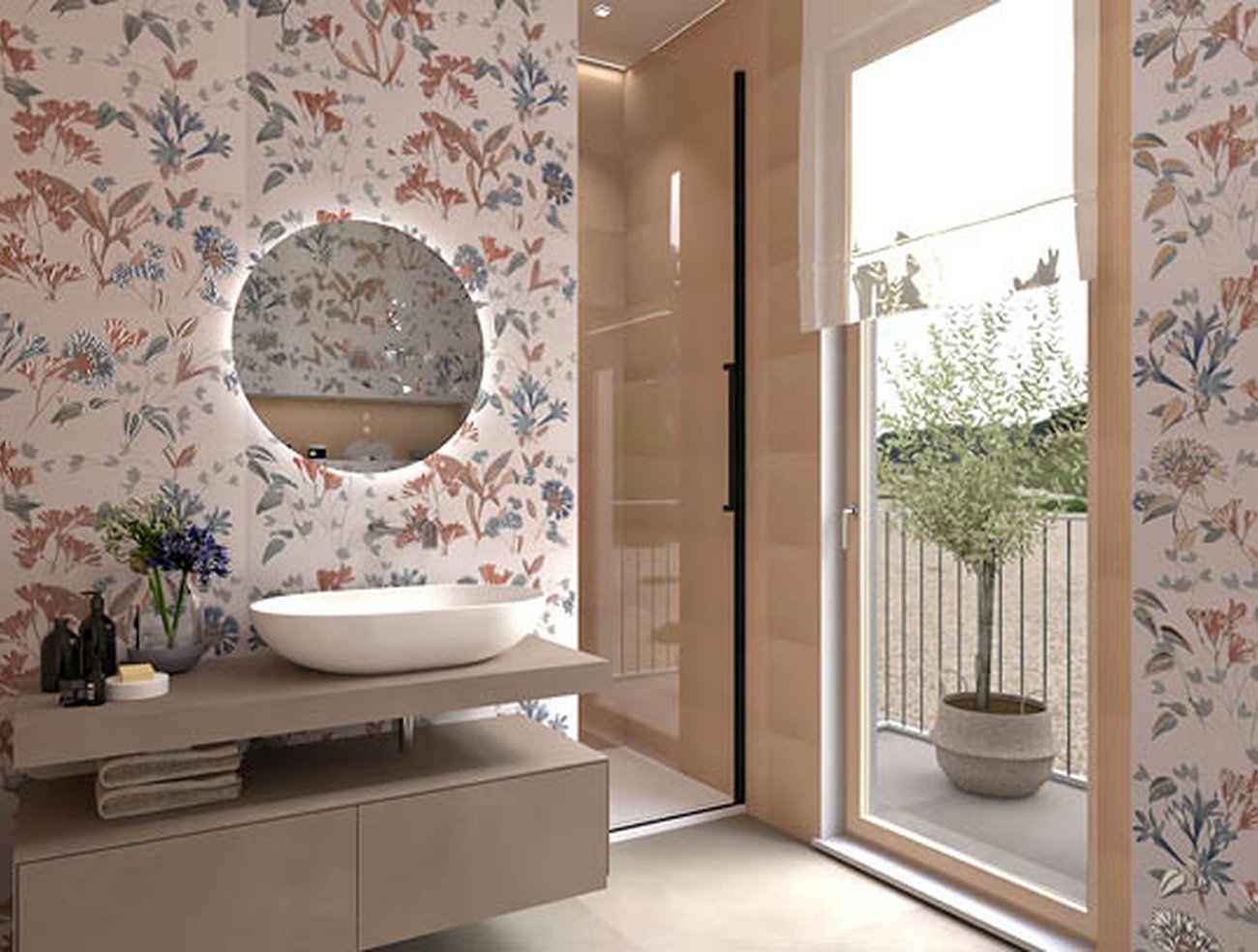 Immagine di progetto bagno di forma Rettangolare, realizzato con piastrelle a pavimento SUMMER e piastrelle a rivestimento DECO&MORE, SUMMER