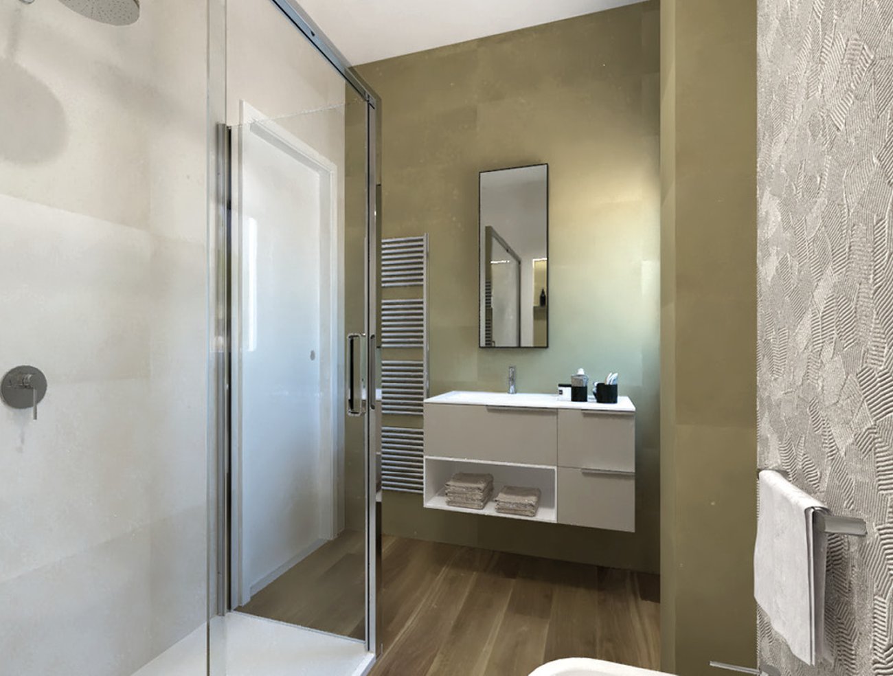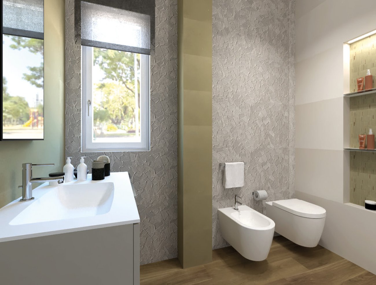 Immagine di progetto bagno di forma Rettangolare, realizzato con piastrelle a pavimento FAPNEST e piastrelle a rivestimento LUMINA SAND ART, SUMMER